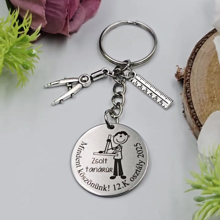 Ajándék matematikatanárnak ballagásra, pedagógusnapra, tanév végére - Gravírozott grafikás ballagási kulcstartó 1_20.