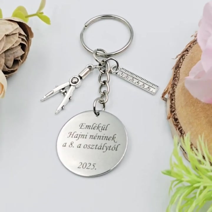Ajándék matematikatanároknak ballagásra, pedagógusnapra, tanév végére - Gravírozott szöveges ballagási kulcstartó 1.