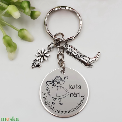 Ajándék néptánc tanárnőnek ballagásra, pedagógusnapra, tanév végére - Gravírozott grafikás ballagási kulcstartó 1_63.