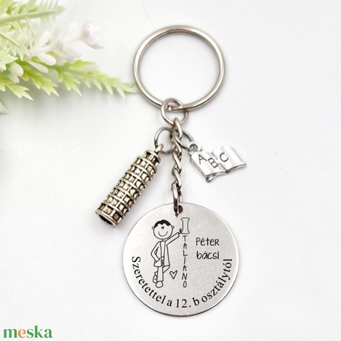 Ajándék olasztanárnak ballagásra, pedagógusnapra, tanév végére - Gravírozott grafikás ballagási kulcstartó 1_72.