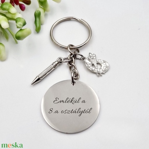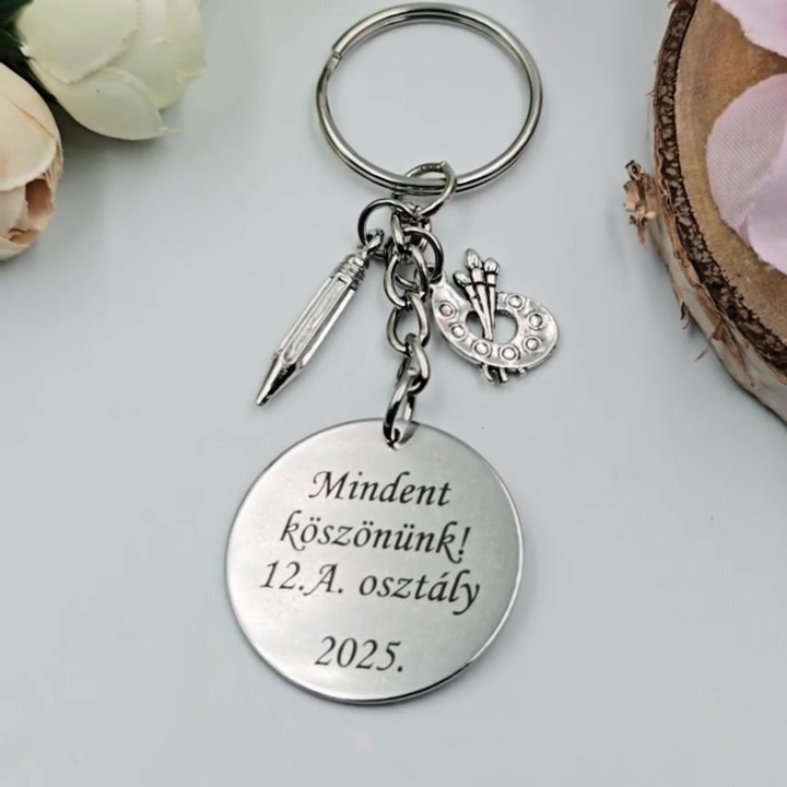 Ajándék rajztanároknak ballagásra, pedagógusnapra, tanév végére - Gravírozott szöveges ballagási kulcstartó 1.