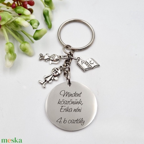 Ajándék tanító néniknek ballagásra, pedagógusnapra, tanév végére - Gravírozott szöveges ballagási kulcstartó 1.