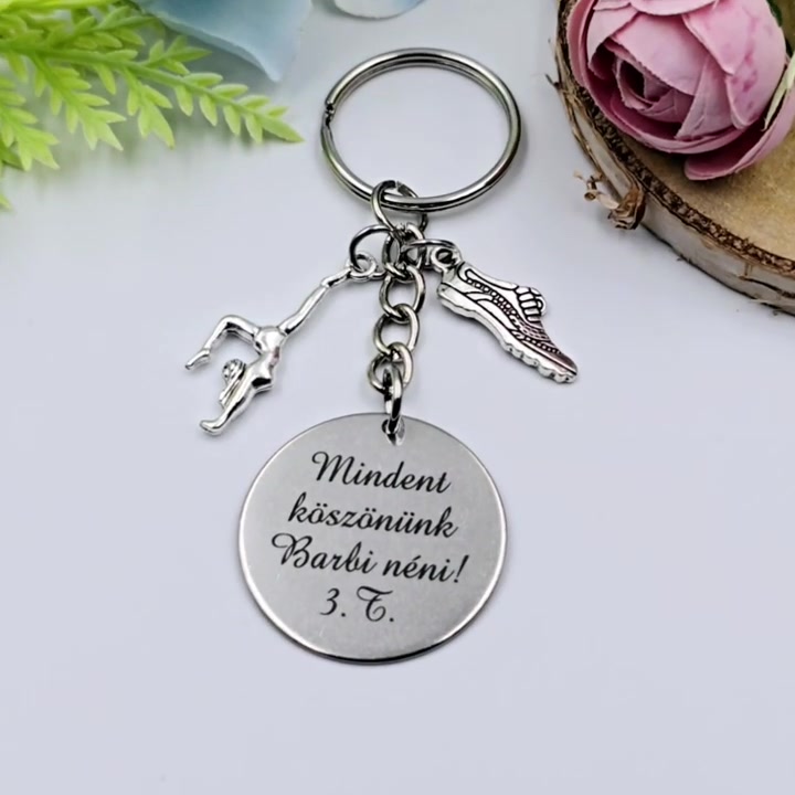 Ajándék testneveléstanároknak ballagásra, pedagógusnapra, tanév végére - Gravírozott szöveges ballagási kulcstartó 1.