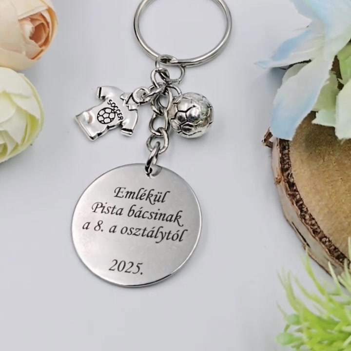Ajándék testneveléstanároknak ballagásra, pedagógusnapra, tanév végére - Gravírozott szöveges ballagási kulcstartó 2.