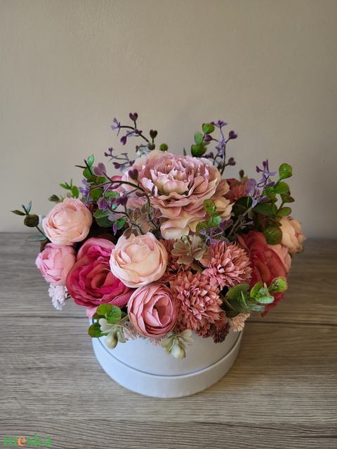 - Anyaga: díszdoboz, tűzőhab, selyemvirág
