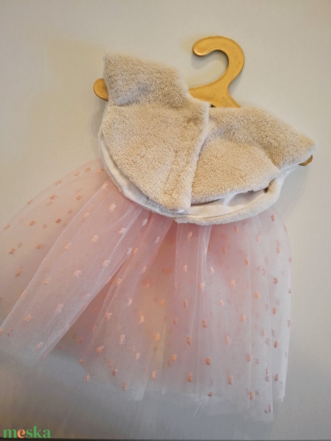 Tüll szoknya, szőrmés pelerinnel - Textiljáték figurákra (Maci, Őzi, Nyuszi, Kutyus, Egérke, Panda)