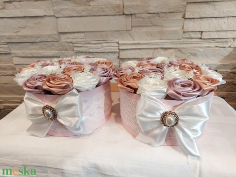Szülőköszöntő virágdoboz selyemrózsákkal/2db/