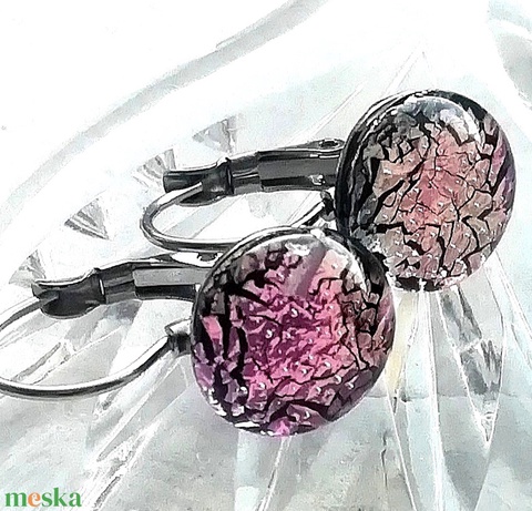 NEMESACÉL! Magnólia dichroic kapcsos fülbevaló, ajándék nőknek névnapra, születésnapra.