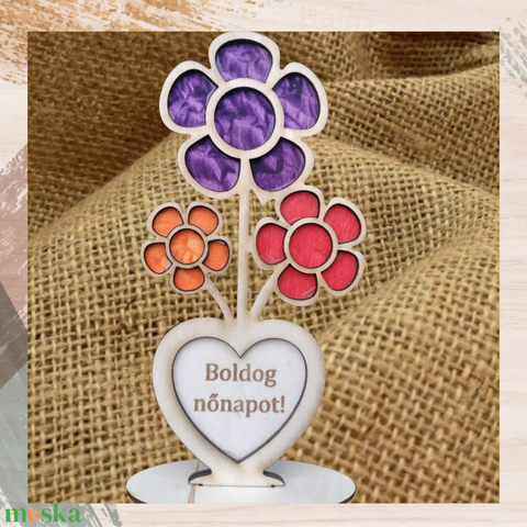 Fa virág gravírozott Nőnapra egyedi gravírozott Boldog Nőnapot