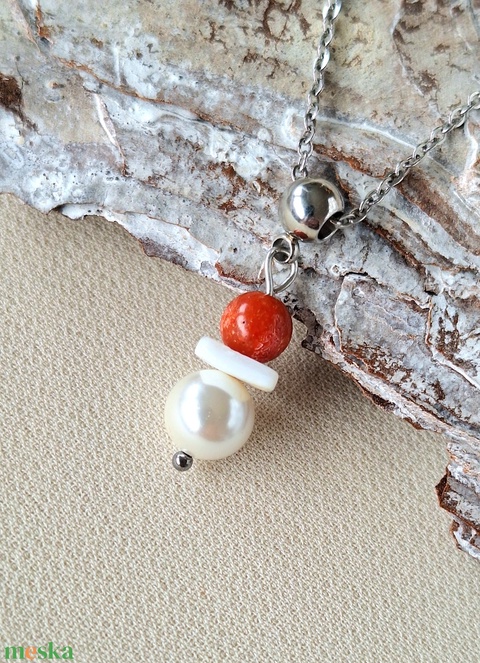 Gyöngy és korall medálos acél nyaklánc