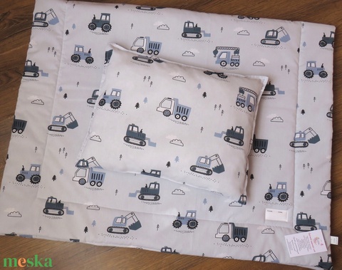 Ovis ágynemű kispárnával-szürke alapon munkagépek