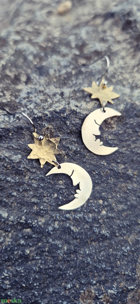 Hold és csillag ezüst színű és sárgaréz fülbevaló
