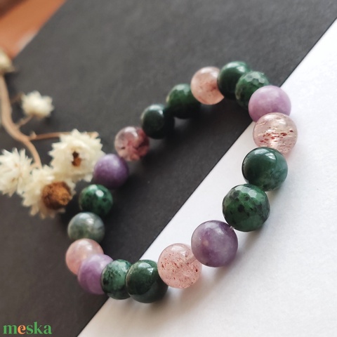 Ruby zoizit - lepidolit - moha achát - hematitos kvarc karkötő