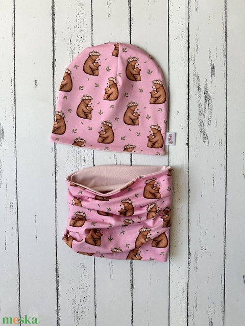 Medvebocs és mamája sapka-sál szett (50-52 cm)