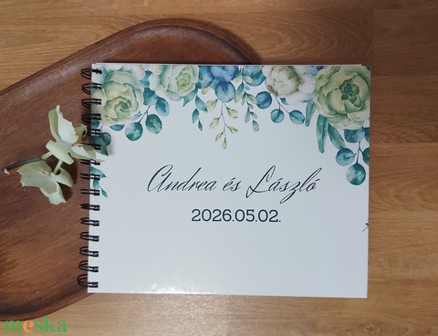 Esküvői vendégkönyv , emlékkönyv - zöld bazsarózsa