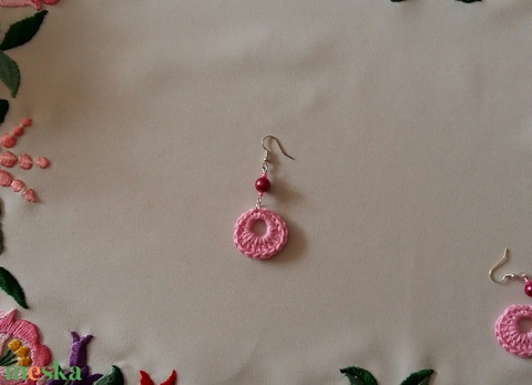 - Anyag/Összetevő catania horgoló fonal, szerelőkarika, szerelőpálca, gyöngy, fülbevaló alap