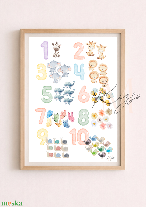 🔢 1–10 Számolós gyerek poszter – Tanulj játékosan