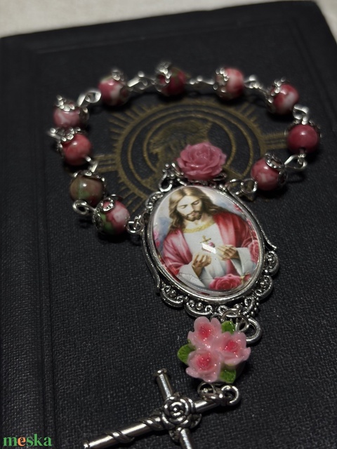 Jézus Szíve kézműves egytizedes, rhodonit ásvánnyal