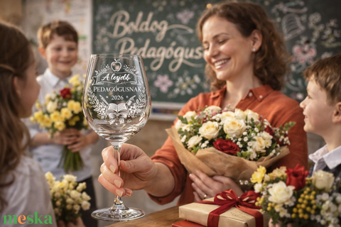 Lepd meg a kedvenc tanárodat egy igazán különleges és maradandó ajándékkal! Ez az elegáns, gravírozott borospohár tökéletes választás pedagógusnapra, évzáróra vagy ballagásra. A poháron szereplő felirat – „A legjobb Pedagógusnak” – finoman kidolgozott, tartós gravírozással készül, így hosszú évek múltán is szép emlék marad.