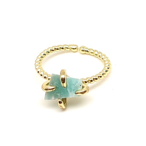 Kommunikáció nyers amazonit állítható gyűrű 10mm arany színű foglalattal