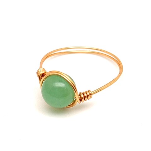 Kiegyensúlyozó zöld achát drót gyűrű 8mm arany színű dróttal