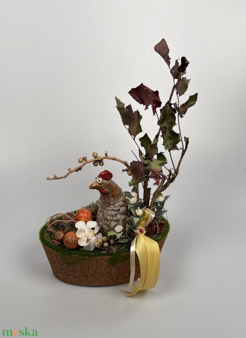 Letargia - tartós tavaszváró asztaldísz a Vén Tyúkhoz - növényi részekkel a mohás kaspó kollekcióból (P-12)