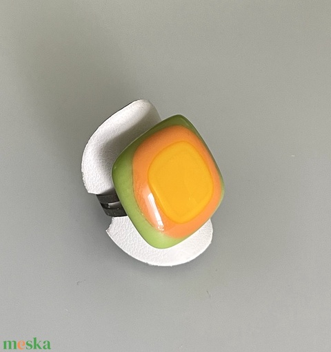 Narancsos, állítható alapú gyűrű, üvegékszer
