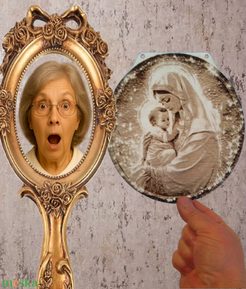 Mária gyermekkel. Húsvéti ajándék idősebbeknek, vallásos érzelműeknek. Gravírozott fa falikép.