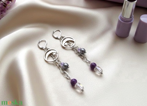Lila ametiszt köves lógós fülbevaló – Misztikus hold és csillag ékszer