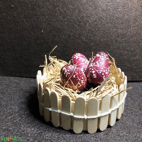 Természetes húsvéti asztaldísz, viasszal írt fatojásokkal