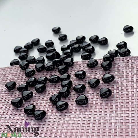 Cseh üveggyöngy - preciosa - szivecske - telt fekete - 20db