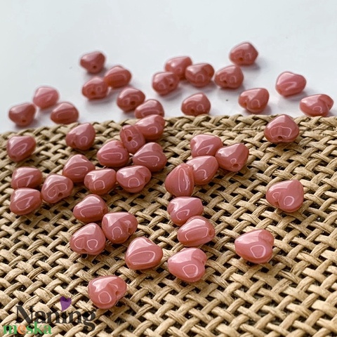 Cseh üveggyöngy - preciosa - szivecske - telt sötétrózsaszín - 20db