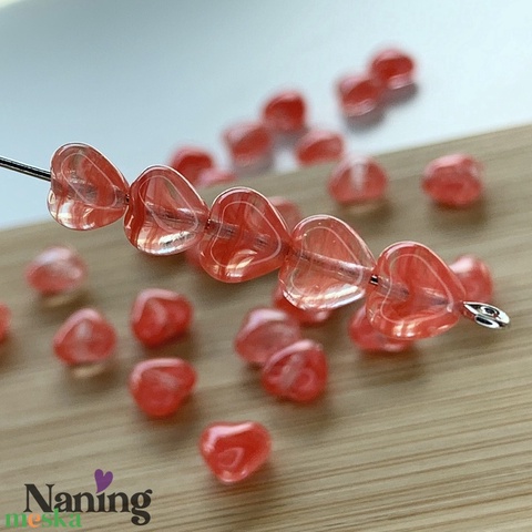 Cseh üveggyöngy - preciosa - szivecske - átlátszó korallszín - 20db