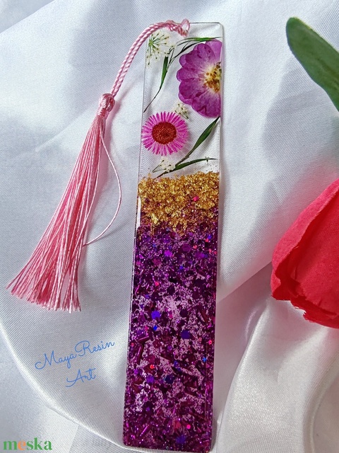 - Anyag/Összetevő műgyanta, csillám, szárított virágok