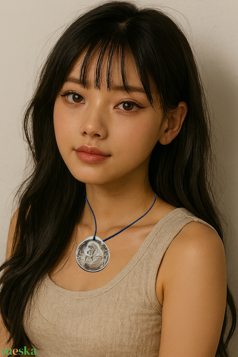 Gravírozott fa medál Szűz Mária és a kis Jézus ábrázolásával. Időseknek, vallásos érzelműeknek, hívőknek húsvéti ajándék