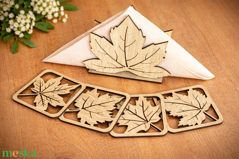 Faleveles szalvétatartó és poháralátét szett