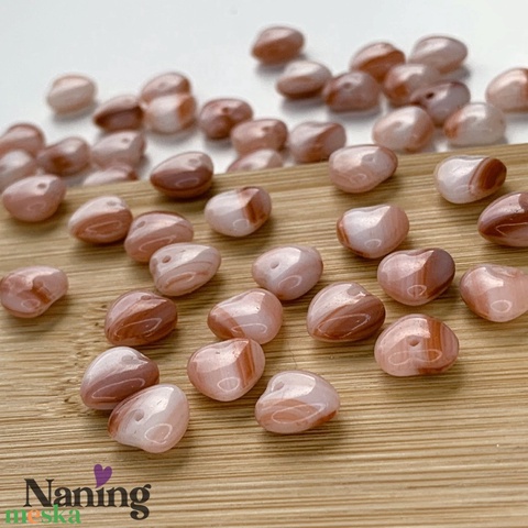 Cseh üveggyöngy - preciosa - szivecske - sávos krémszín/barna - 20db