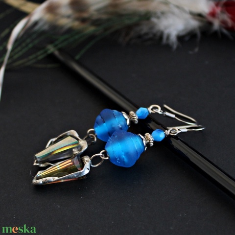 Pompeii - azúrkék rusztikus lámpagyöngy fülbevaló, kék üveggyöngy fülbevaló, MURÁNÓI ÜVEG ékszer