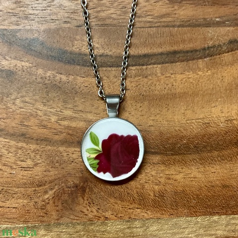 Angol mentett porcelán darabok - nemesacél nyaklánc, vörös rózsás