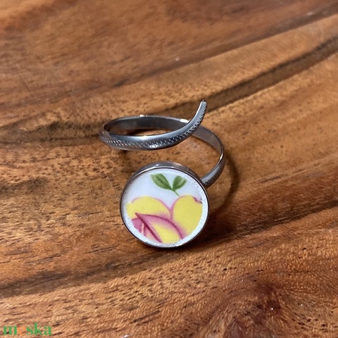 Angol mentett porcelán darabok - kígyós nemesacél gyűrű - rózsás, állítható