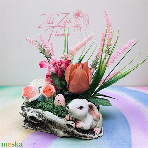 Húsvéti Nyuszi Kompozíció – Rózsás Tavaszi Dísz