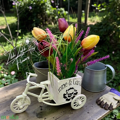 Tavaszi Tulipán Kompozíció – Vintage Biciklis Kaspó