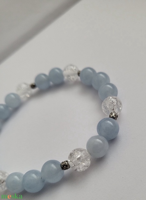 Kék kalcedon-hegyikristály ásványkarkötő