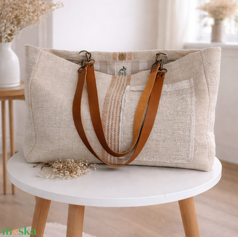 Női vászon válltáska - természetes pakolós táska