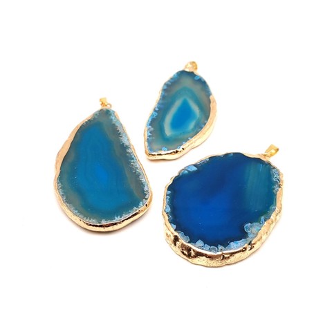 Belső erő kék achát lap medál arany színű foglalattal 25x40–70mm