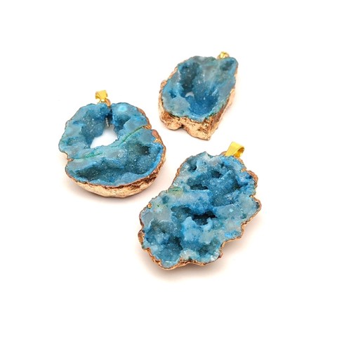 Nyugalom kék geoda kvarc medál arany színű bevonattal 30–45mm