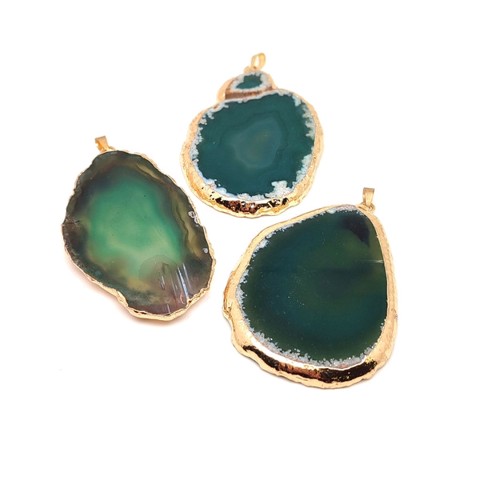 Megújulás zöld achát lap medál arany színű foglalattal 25x40–70mm