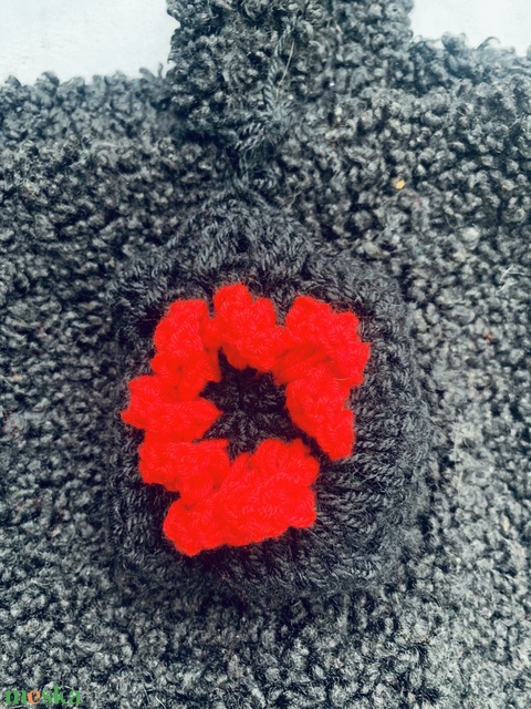 Fekete kötött táska dísz piros színű virággal díszítve eladó