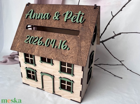 Esküvői borítékgyűjtő doboz, nászajándék-gyűjtő ház - színes