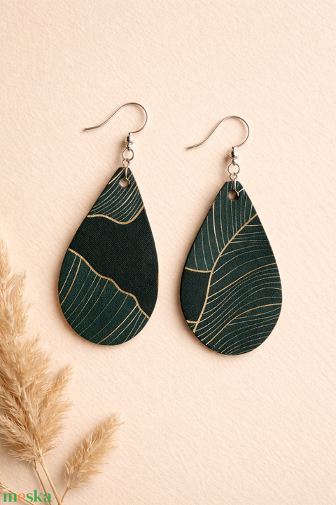 Smaragd Aranylevél – kétoldalas csepp fülbevaló